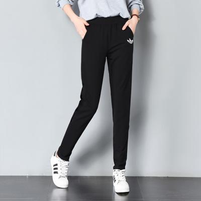 春夏新款女裤子宽松运动裤女休闲舒适纯棉长裤松紧腰系带简约裤子