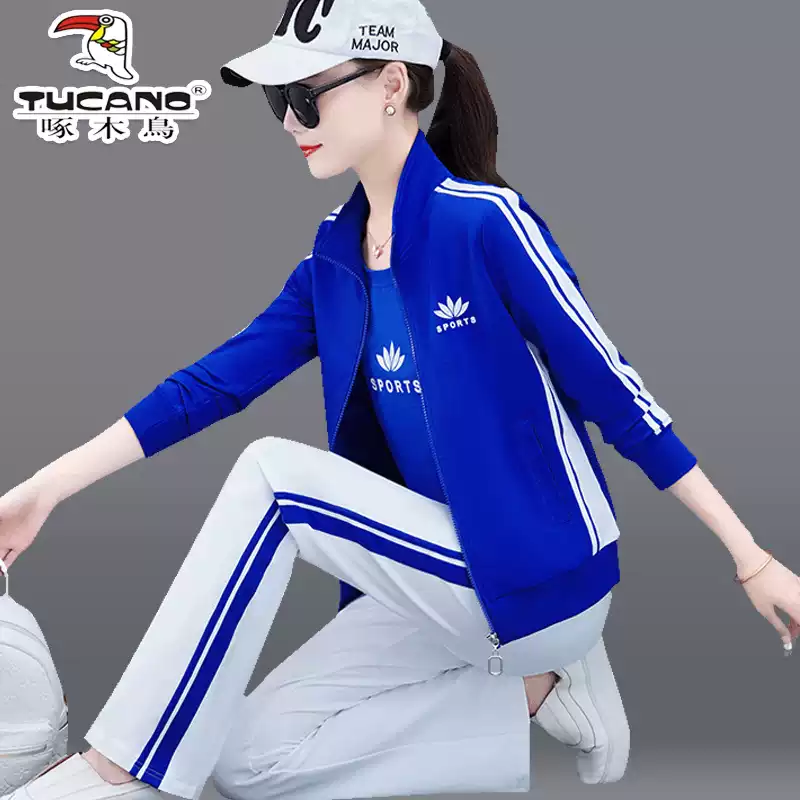 啄木鸟名牌运动服套装女春秋季2025新款大码广场舞时尚休闲三