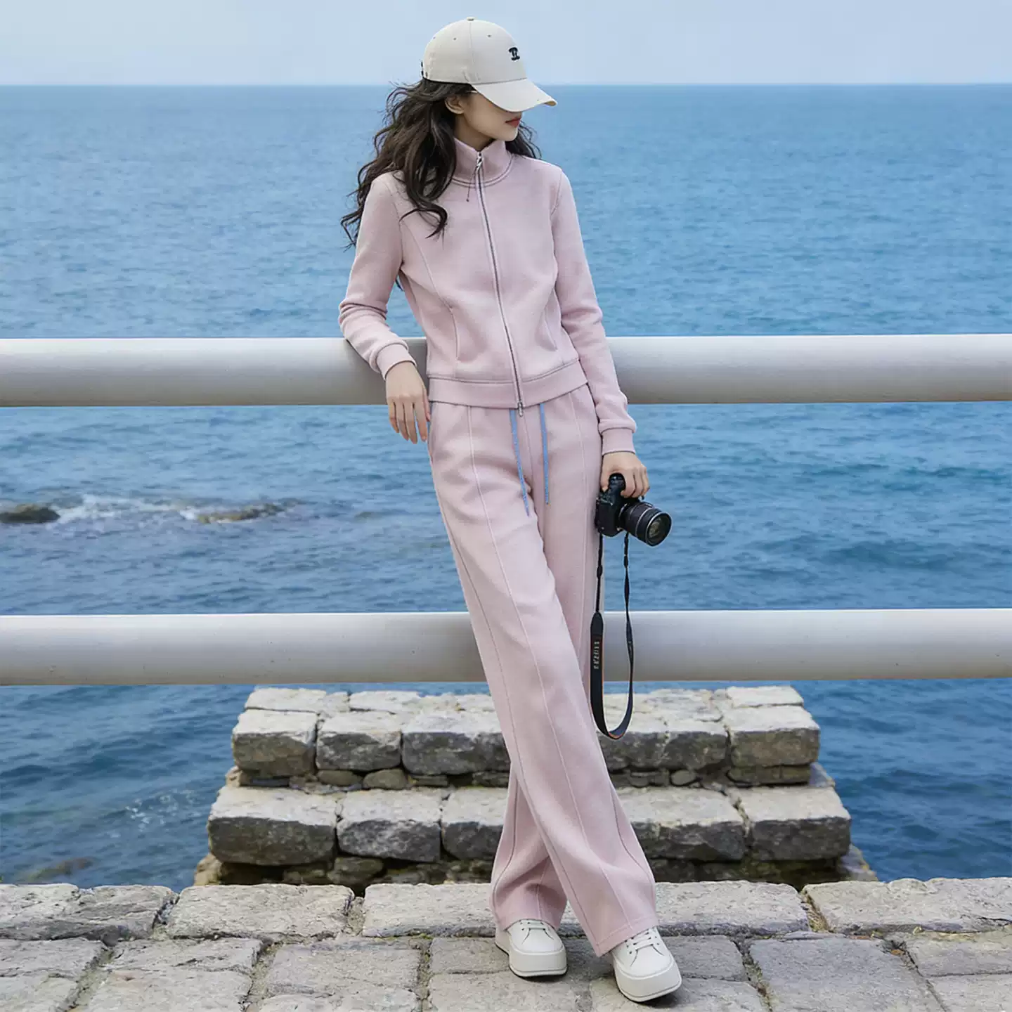 时尚减龄休闲运动套装女2026春季新款拉链立领外套阔腿裤两件