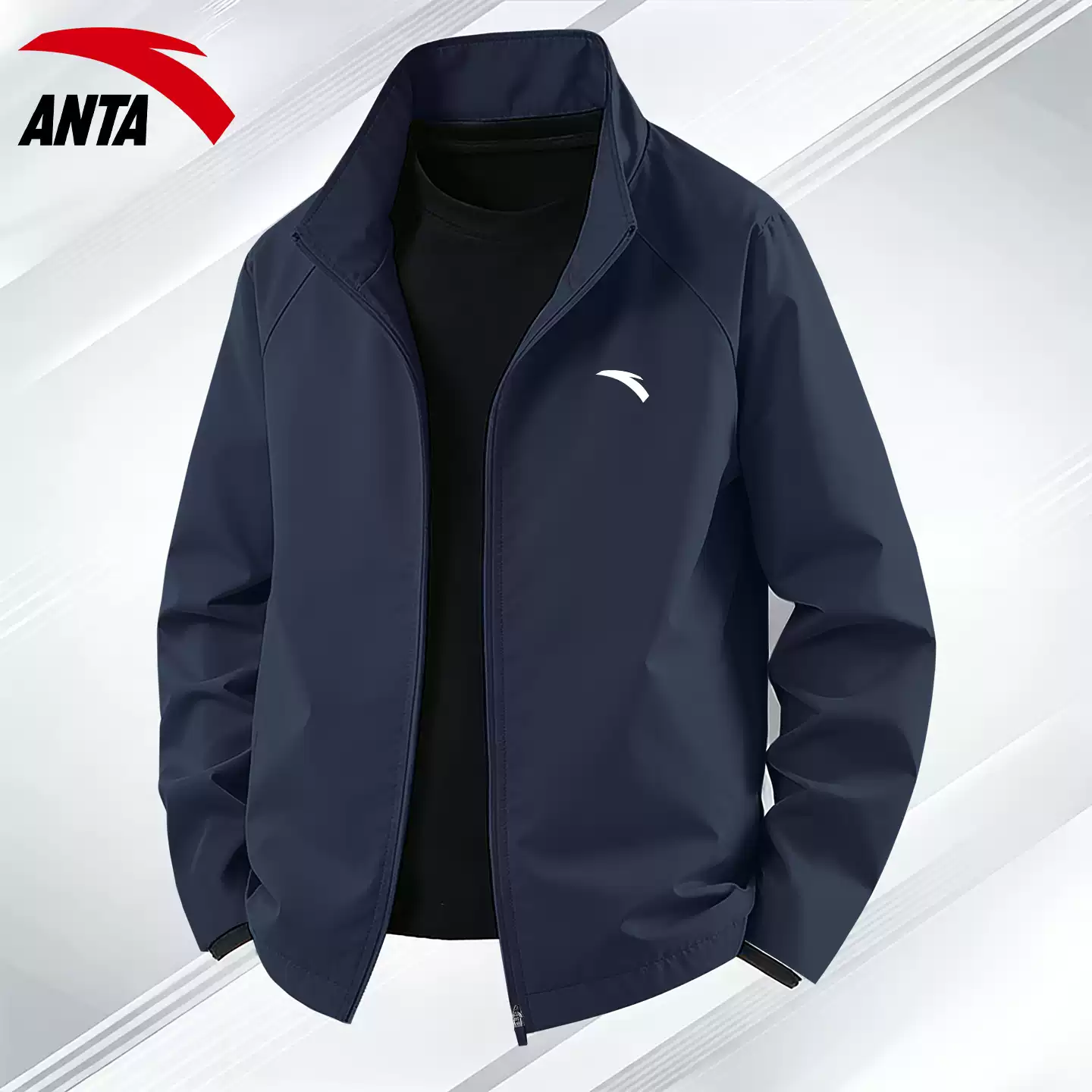 安踏男士立领夹克潮流帅气时尚爸爸装加绒防风休闲大码行政外套男