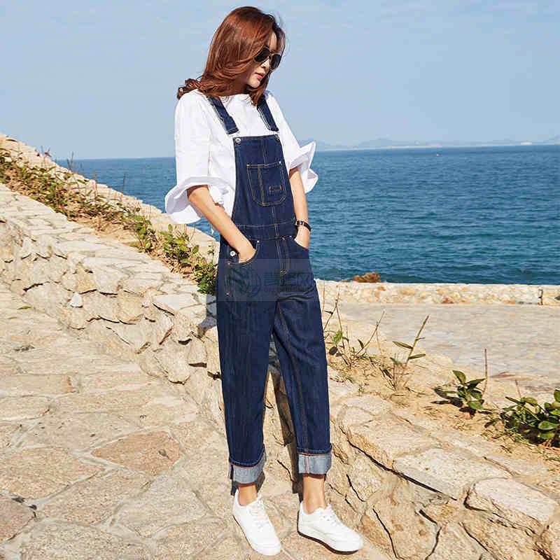 牛仔背带裤女新款ulzzang学生韩版可爱bf宽松原宿直筒九